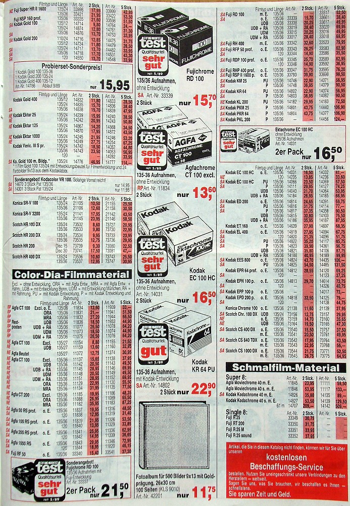 Ich danke Robert Shanebrook von Kodak, Jan Böttcher und Wolfgang Schmitz für die Scans der alten Fotokataloge und Preislisten.