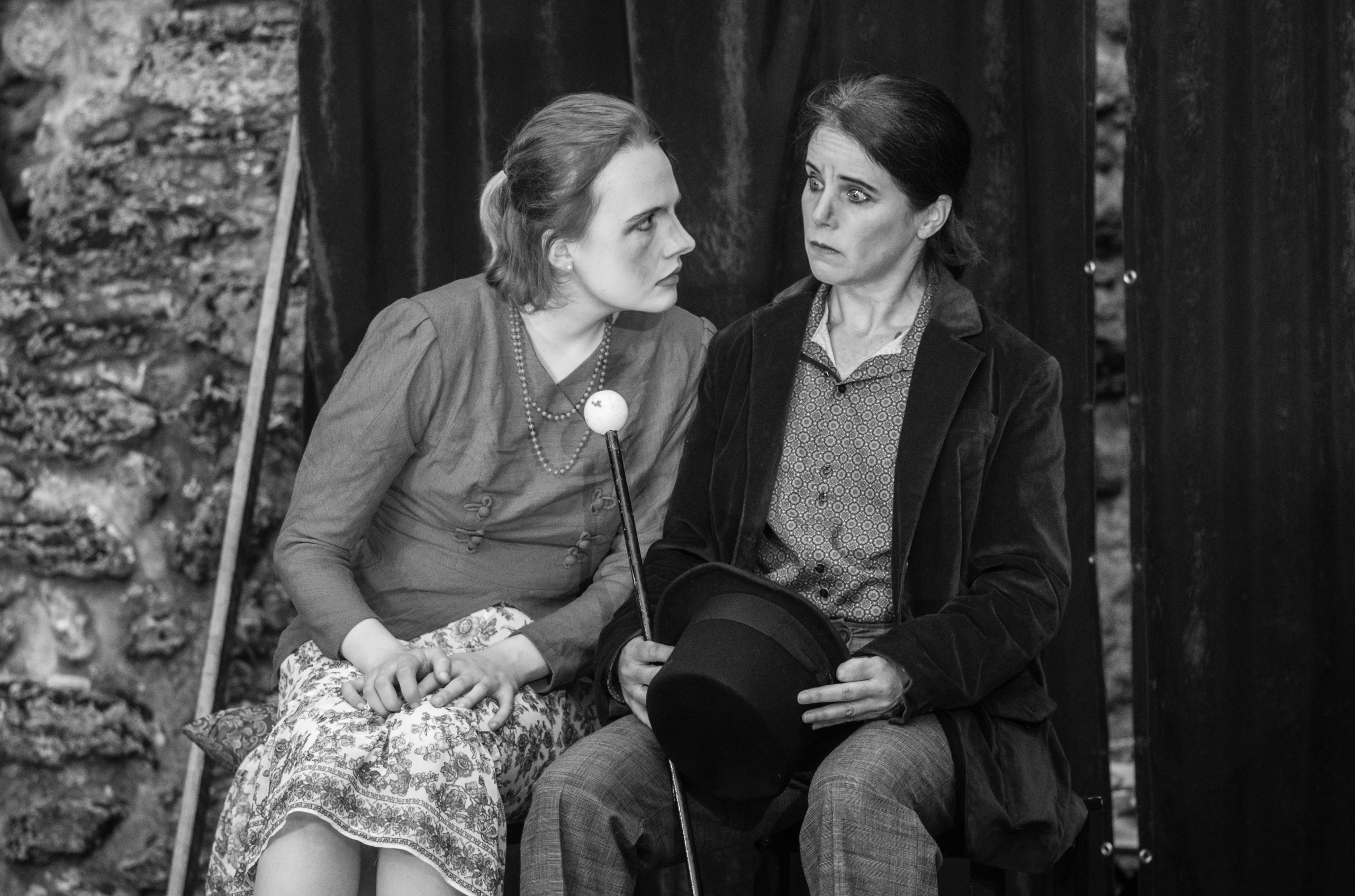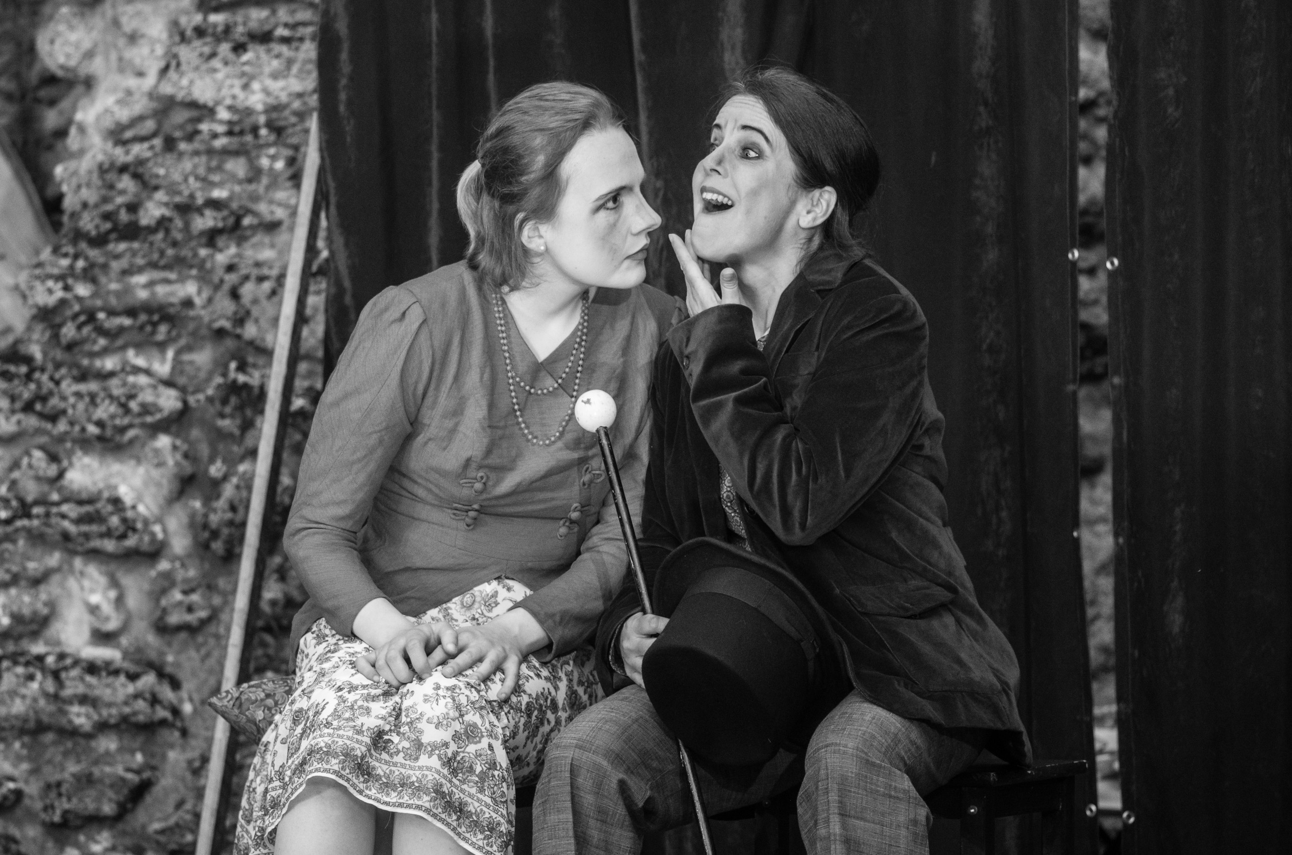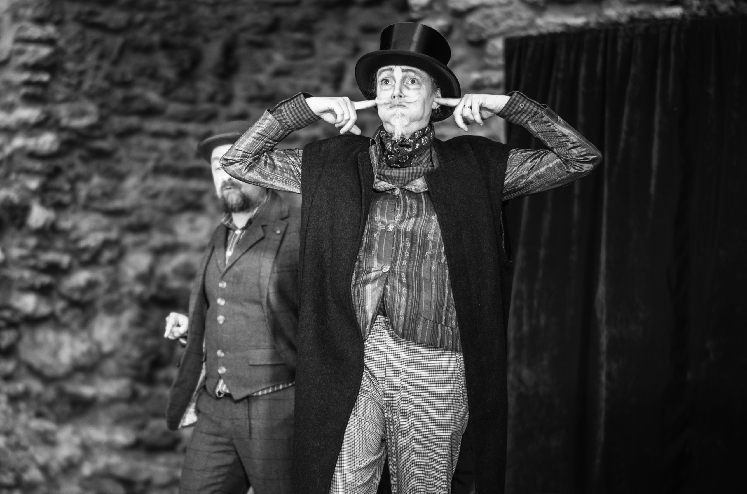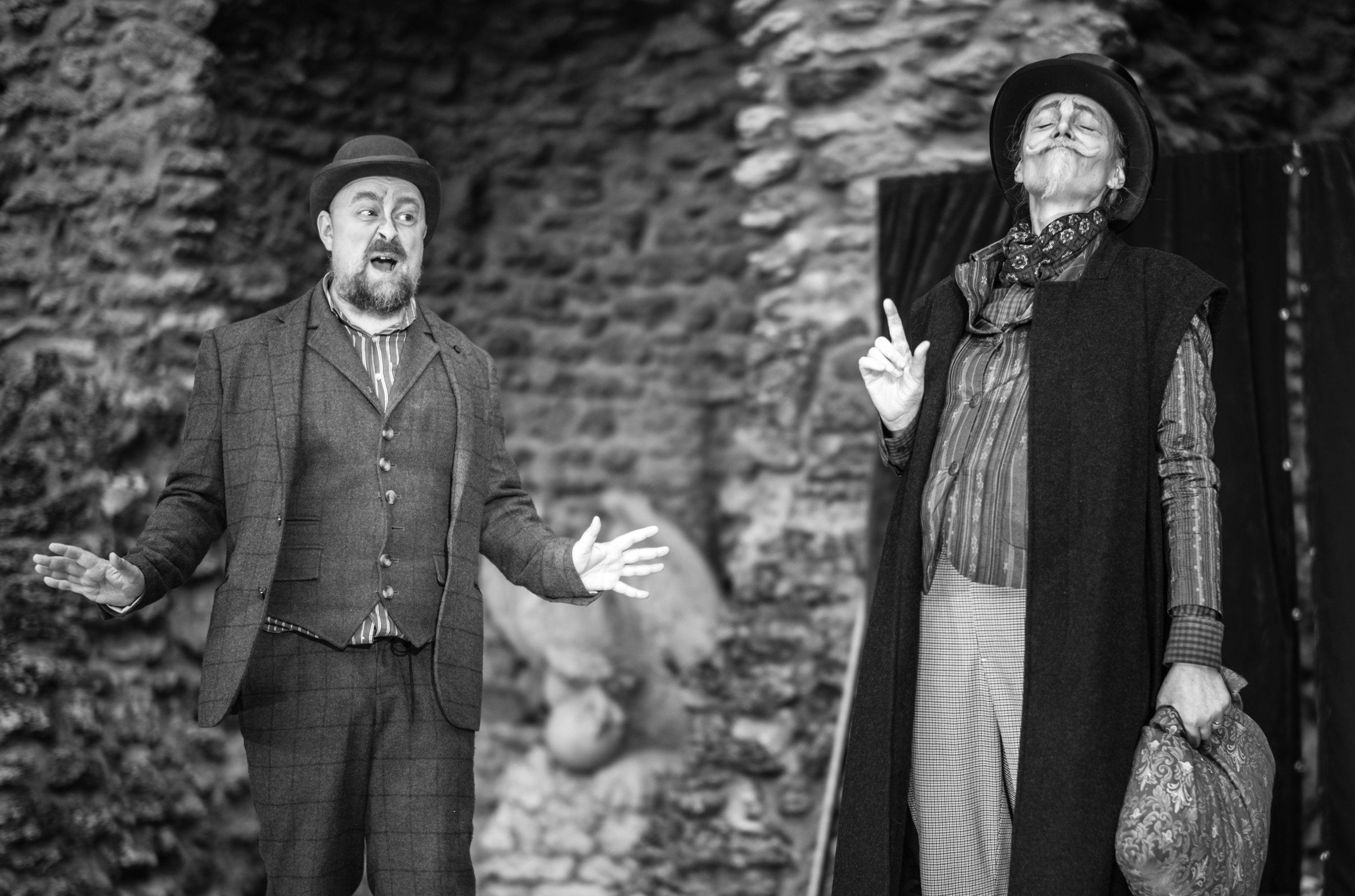 Überhaupt war es wegen der Bewölkung eher weniger hell, als ich erwartet hätte. Die Leica M10-M (die Monochromen überhaupt, allen voran die M11-M) sind ISO-Monster, dass heisst, wenig Licht ist das geringste Problem. Aber ich hatte zunächst fest auf ISO 400 gestellt (weil das die „Native“ ISO ist mit der besten Dynamik) und bei Einsatz des 90mm Macro-Elmar mit größter Öffnung von f/4 und Gelbfilter davor kam ich plötzlich zu Belichtungszeiten deutlich unter 1/100 Sekunde und das ist zu lang. Kamera-Shake und Bewegung der Schauspieler zusammen kann man da nicht ausgleichen.