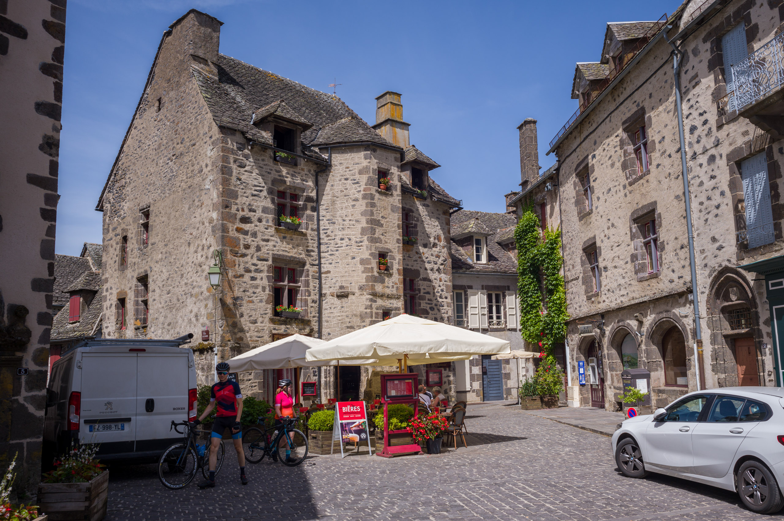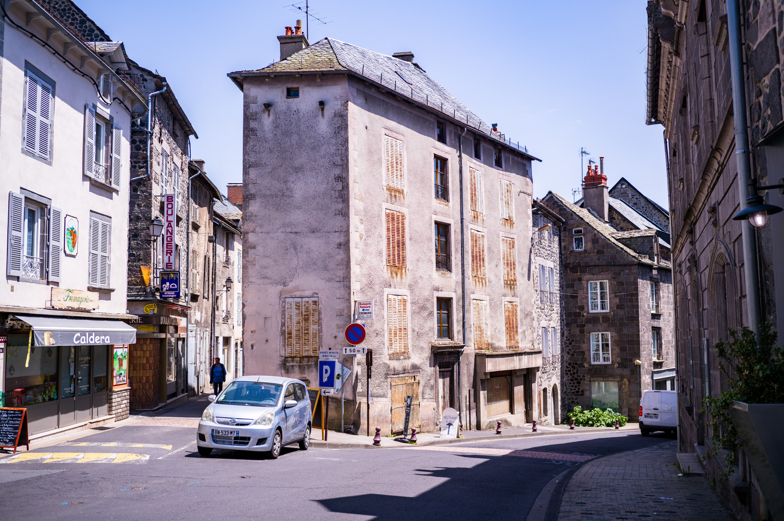 Salers ist so ein über-restaurierter Mittelalter-Ort, ehrlich gesagt eine Touristenfalle. Gruselig perfekt. Da fand ich Murat, das auch nicht ungepflegt ist und einen historische Stadtkern hat, realistischer. Da wohnen und arbeiten Leute ganz normal. Auf dem Rückweg von Salers kaufte ich in einer unscheinbaren Boulangerie eine Tarte au Pomme, ein kleines Mädchen von höchstens 11 Jahren bediente mich souverän. Die Tarte war exzellent.