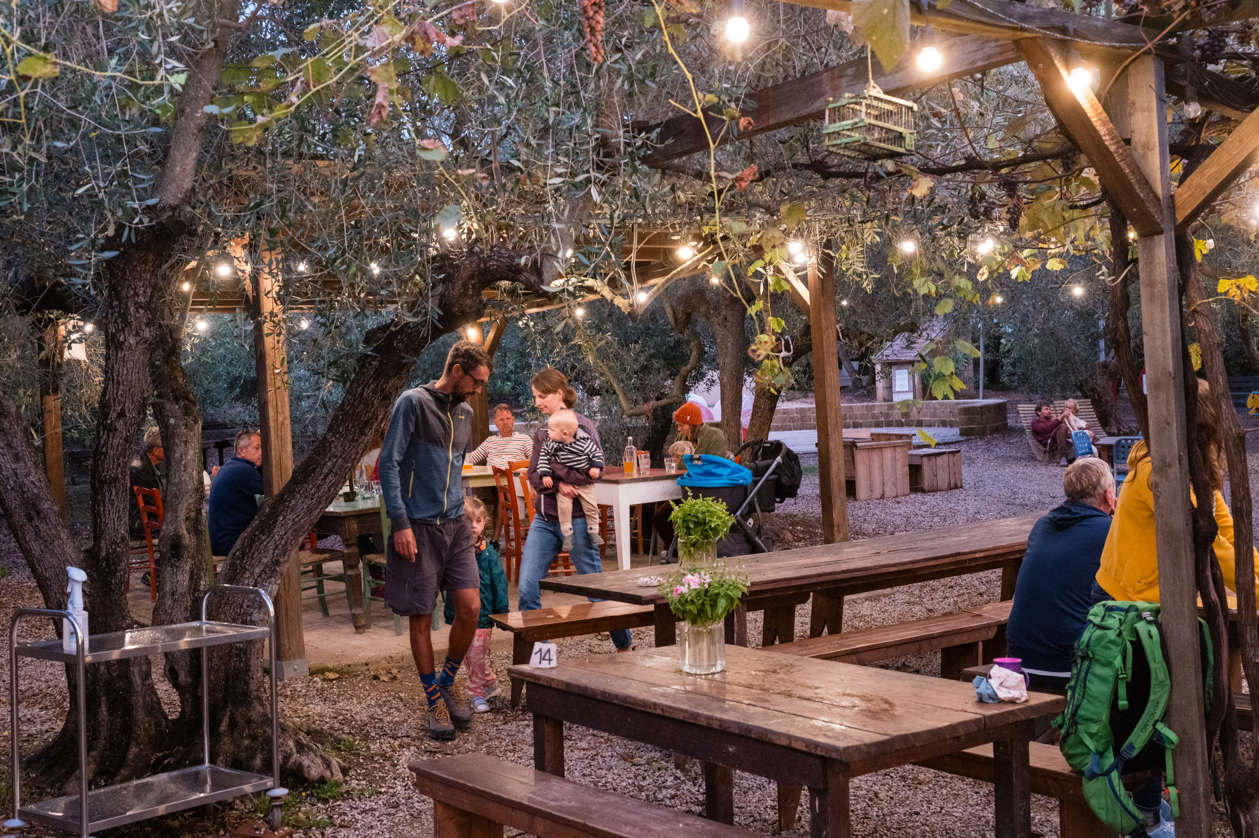 Wenn wir die Sonne erfolgreich hinter dem Horizont versenkt hatten, kochten wir was italienisches aus den Sachen, die wir tagsüber direkt von den Erzeugern gekauft hatten. Ein paarmal gingen wir auch abends essen, wir kannten noch ein paar gute Adressen vom letzten Jahr. Selbst an dem Campingplatz bei Scaglieri gab es ein gutes Ristorante und unten direkt im Örtchen am Wasser auch.