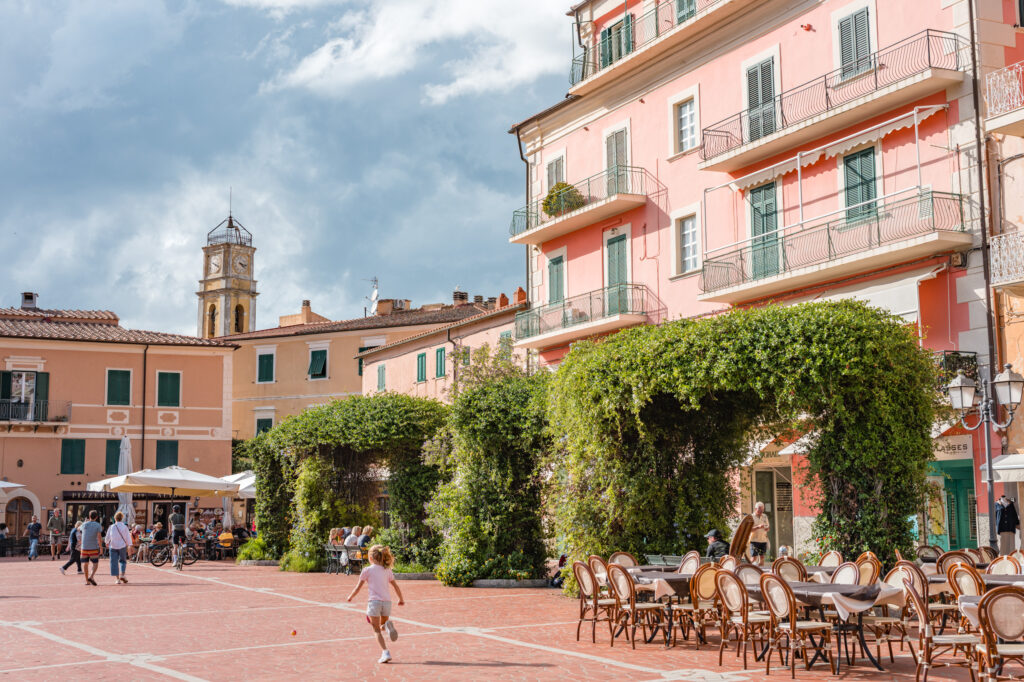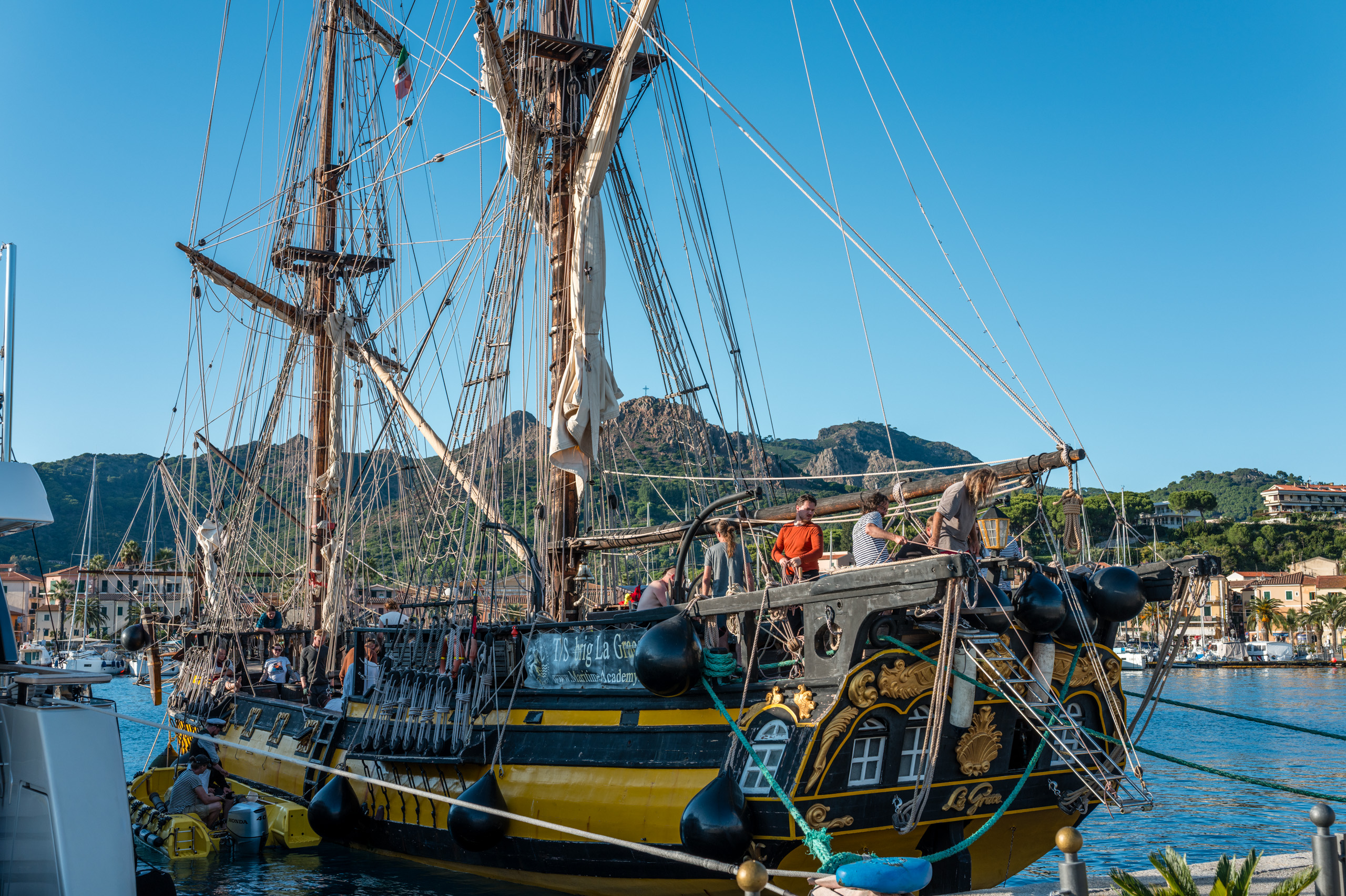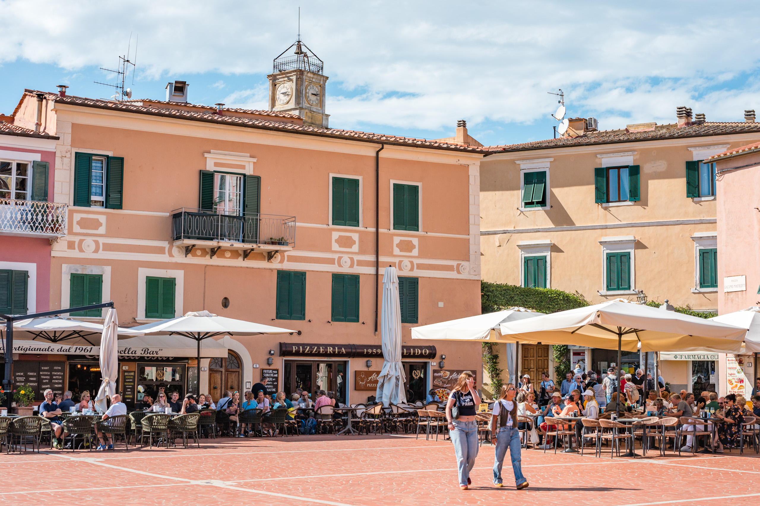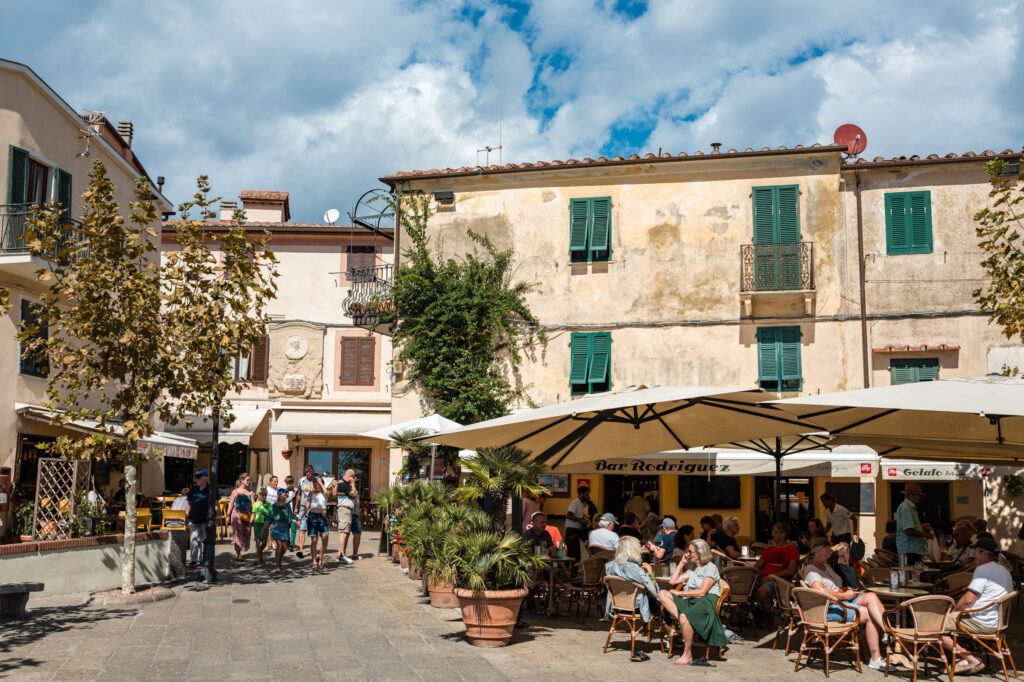Von den Hafenstädten würde ich Porto Azurro besonders hervorheben. Es gibt eine schöne Front zum Hafen hin mit Piazza und einer liebevoll restaurierten Altstadt. An der Piazza haben wir öfter gesessen und mit einer Portion Eis oder einem Caffé das Ambiente genossen. Am nordöstlichen Ende der Bucht gibt es einen Weg unterhalb der Festung San Giacomo (ein Knast, die Kurgäste brauchen eine spezielle Qualifikation). Der Weg führt um die Landzunge zum nächsten Strand (ca. 15 Minuten), dem Spaggia di Barbarossa. Will man dies zu einer kleinen Wanderung ausdehnen, geht es weiter über Spaggia Reale zum („schwarzen“) Terranera-Strand.