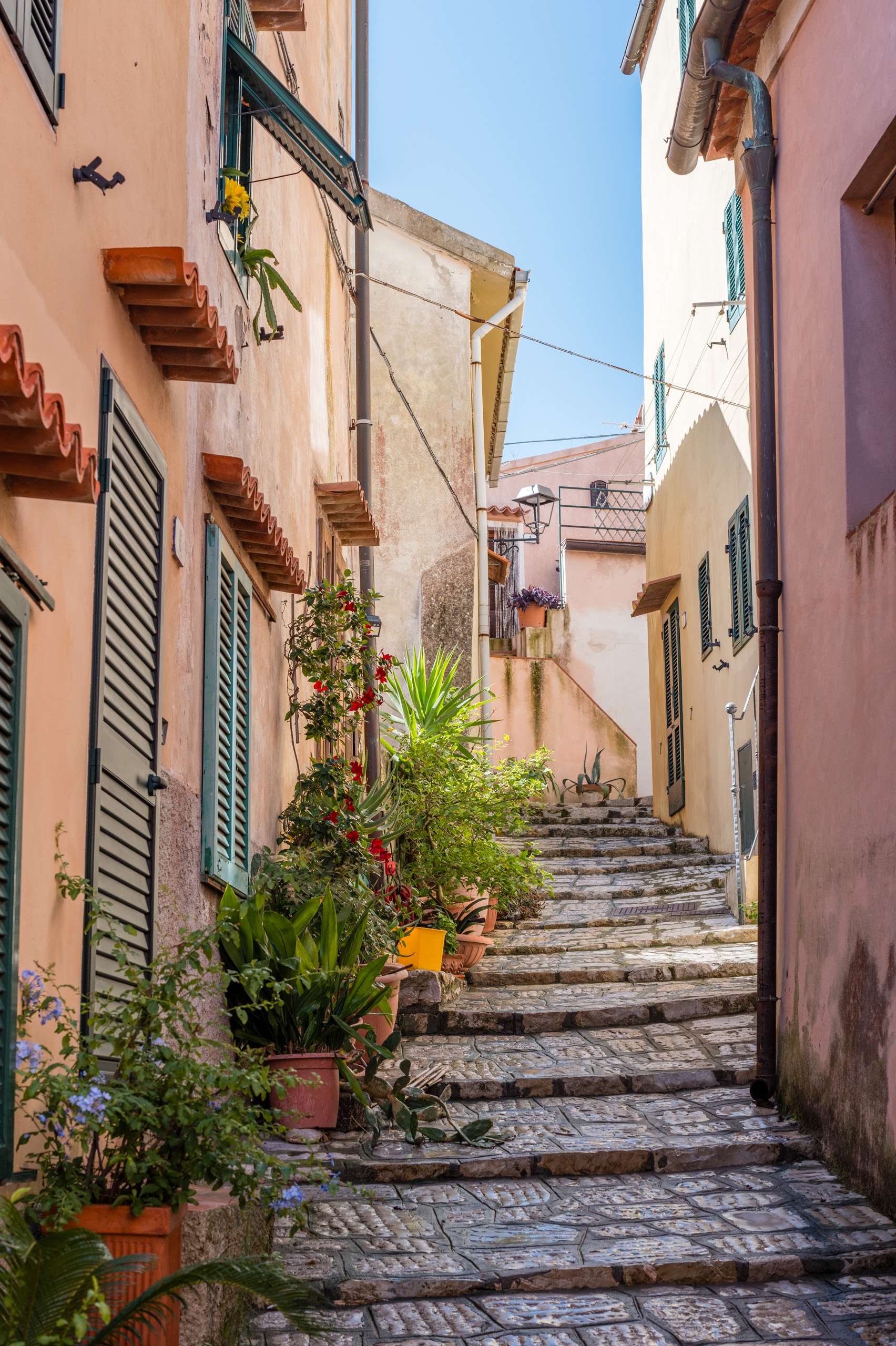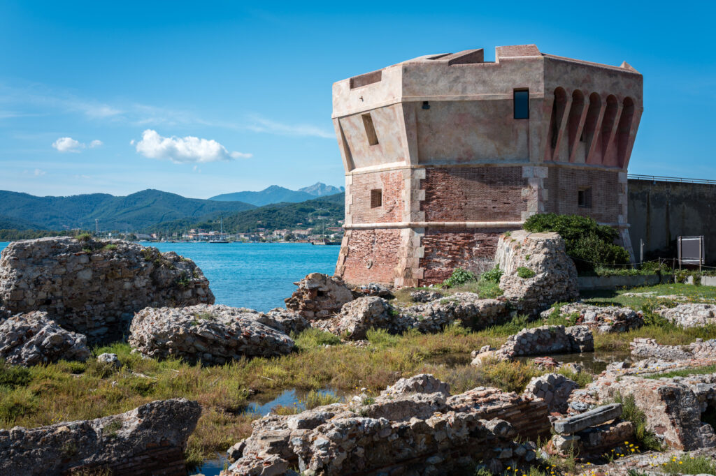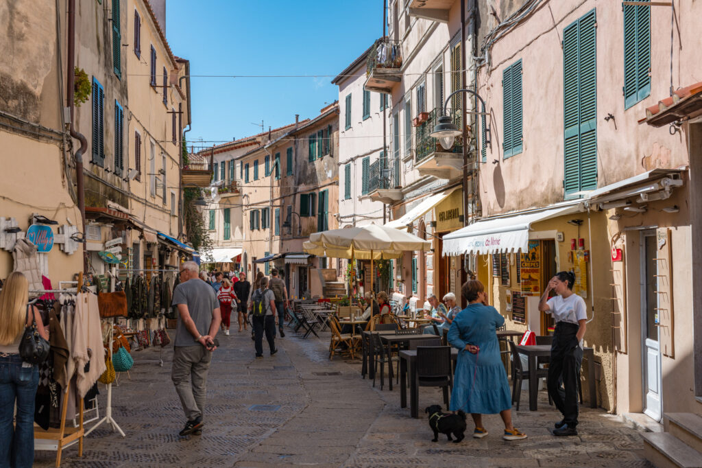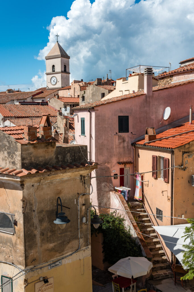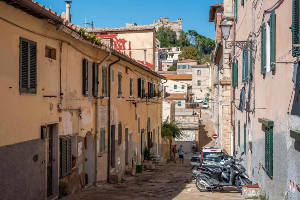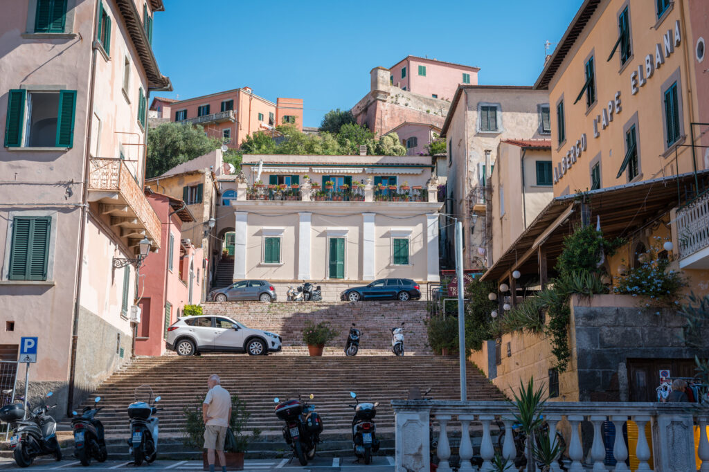 Portoferraio als Hauptstadt ist einen Besuch wert. Die Altstadt liegt unterhalb des Forte Falcone (Besuch lohnt sich), diese Festung liessen wir diesmal aus, dafür schauten wir Forte Stella (lohnt sich nicht wirklich) und das Archäologische Museum auf der Linguella an. In der Altstadt findet sich die „Treppe der Medici“ und das alte Wassertor (Porta di Mare) zum Hafen hin. Das Archäologische Museum ist zwar sehr aufgeräumt, aber nicht spannend. Museumspädagogisch verbesserungswürdig, gelinde gesagt. Auf der Linguella sind noch die Ruinen einer römischen Villa und der Torre della Linguella als sehr prominenter Teil der Skyline bei der Hafeneinfahrt mit der Fähre.