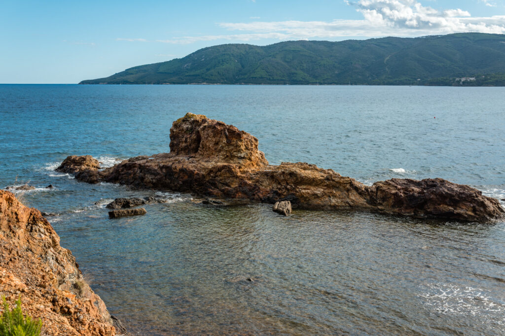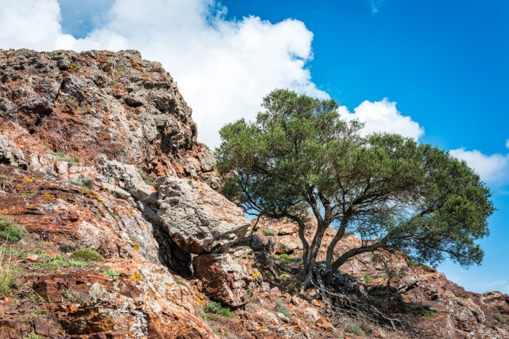 Elba ist ein geologisches EL Dorado (nur statt Gold gibt’s halt Eisen). Das westliche Elba mit Monte Capanne besteht vorwiegend aus Granitgesteinen, im zentralen Teil dominieren metamorphe und sedimentäre Gesteine (z.B. Schiefer und Kalkstein) und im östlichen Teil sind die Eisenerzvorkommen, die Elba schon für die Etrusker interessant machten und die wechselvolle Geschichte der Insel beeinflussten. Am Monte Calamita (dem „Magnetberg“) südöstlich von Capoliveri kann eine stillgelegte Mine besichtigt werden, wir haben das ausgelassen, weil wir tatsächlich zuhause ganz in der Nähe (in Kleinenbremen) etwas gleichartiges haben.