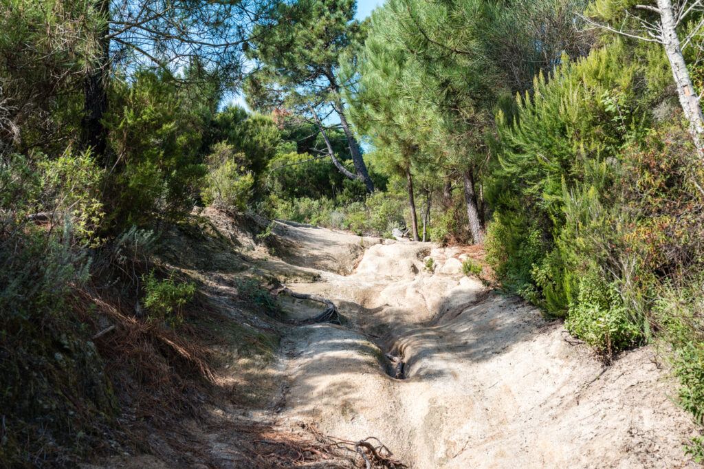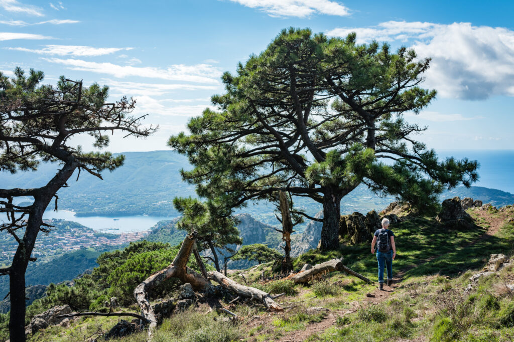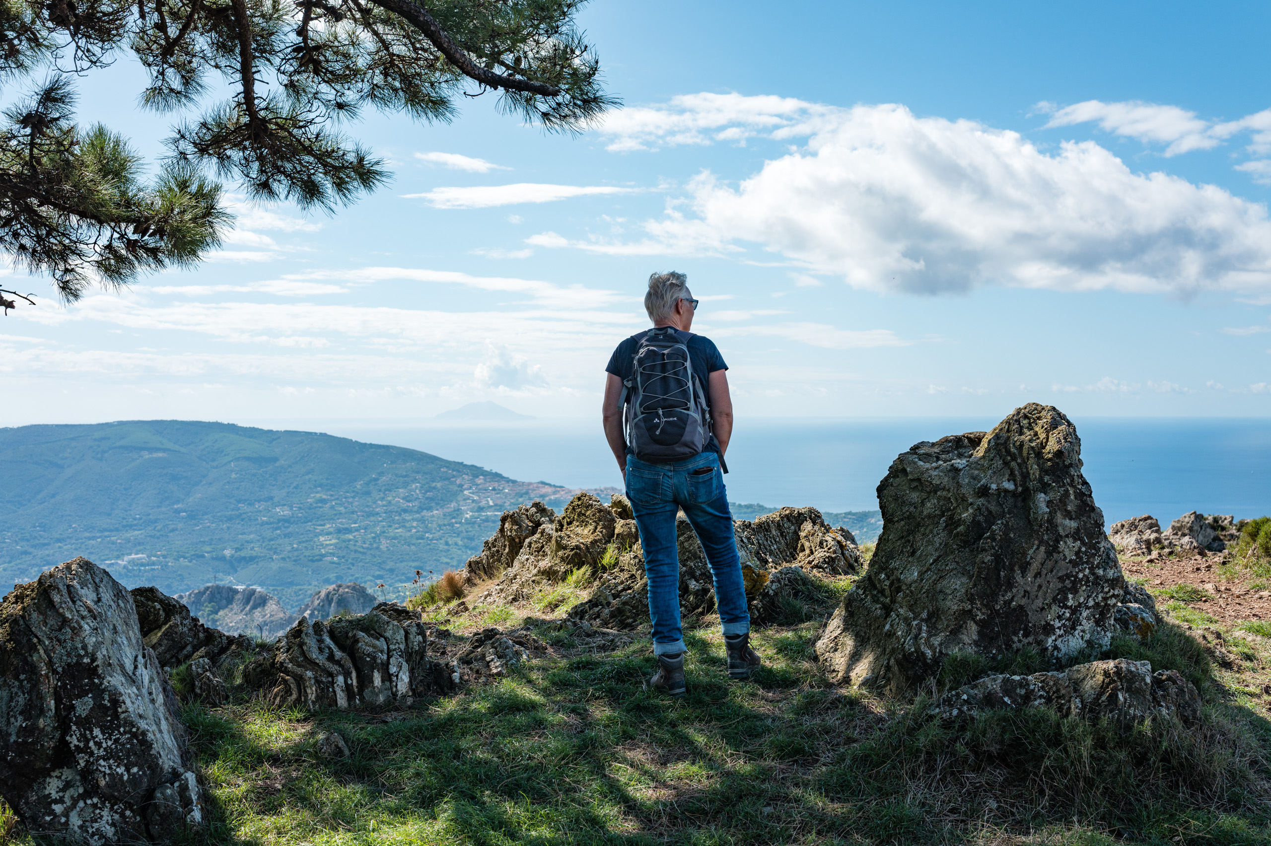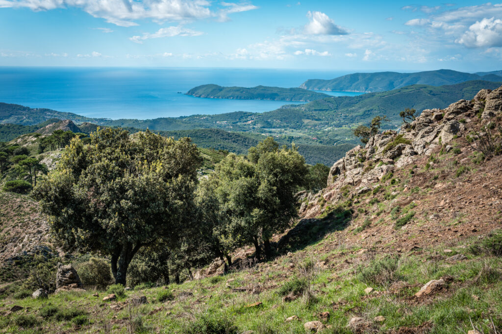 Das zentrale Elba kann man wunderbar über den Hauptkamm erwandern. Es dominieren hier die Sedimentgesteine. Vom Pass der SP32 (Parkplatz „Le Panche“) aus geht der Weg über den Kamm nach Südosten Richtung Porto Azurro oder in die andere Richtung nach Cavo. Der Kammweg ist recht einfach zu begehen, wir stoppten oberhalb von Porto Azurro und gingen dann zurück. Muss ich es extra erwähnen? Natürlich fantastische Aussicht in alle Richtungen. Das war für mich in der ersten Woche machbar.