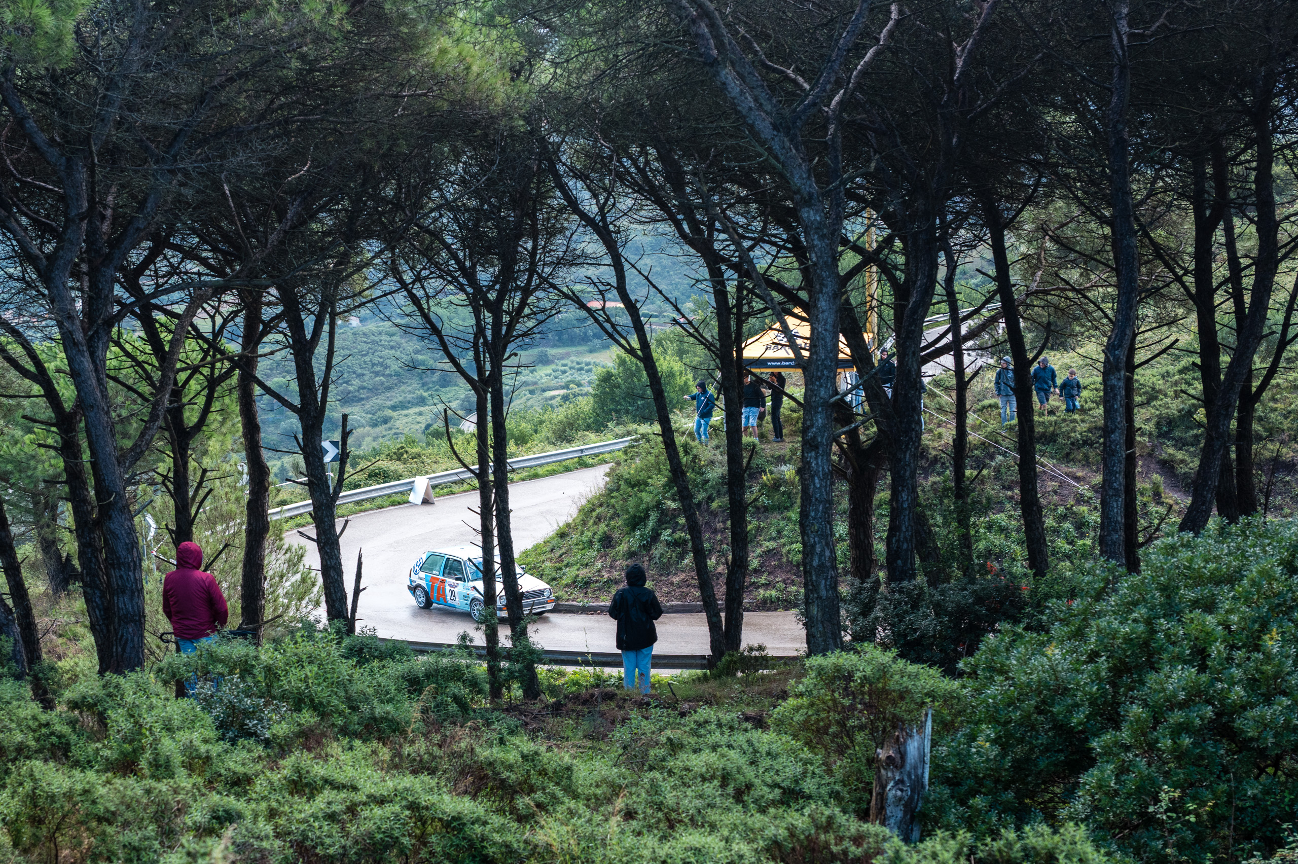 Das Dröhnen der Rallye-Autos, die den Pass hochkachelten, war bis in den Ort zu hören. Schliesslich gingen wir eine kleine Nebenstrasse hoch zum Pass von Volterraio (15 Minuten zu Fuss), weil ich mal sehen wollte, was sich dort abspielte. Die Rallye war im vollen Gang, ich machte ein paar Fotos von den vorbei rasenden Autos. Aus der Erfahrung bei der Bergwertung der Deutschland-Tour heraus stellte ich Autofokus der Leica Q3 43 auf „kontinuierlich“ und die Belichtungszeit fest auf 1/2000s, damit die Kamera nicht auf elektronischen Verschluss schaltete, was wegen der schnell bewegten Motive unweigerlich zu „rolling shutter“ geführt hätte. Ich hatte nicht auf Serienbild gestellt, aber von jedem, der da vorbeikam, machte ich mehrere Einzelbilder schnell nacheinander und jedes ist scharf. Auch wenn der Autofokus der Q3-Modelle oft gegenüber den Modellen der fernöstlichen Konkurrenz als weniger schnell eingestuft wird (ich konnte das nie prüfen), kann ich nicht sagen, dass er für meine Zwecke zu langsam ist. Im Gegenteil.