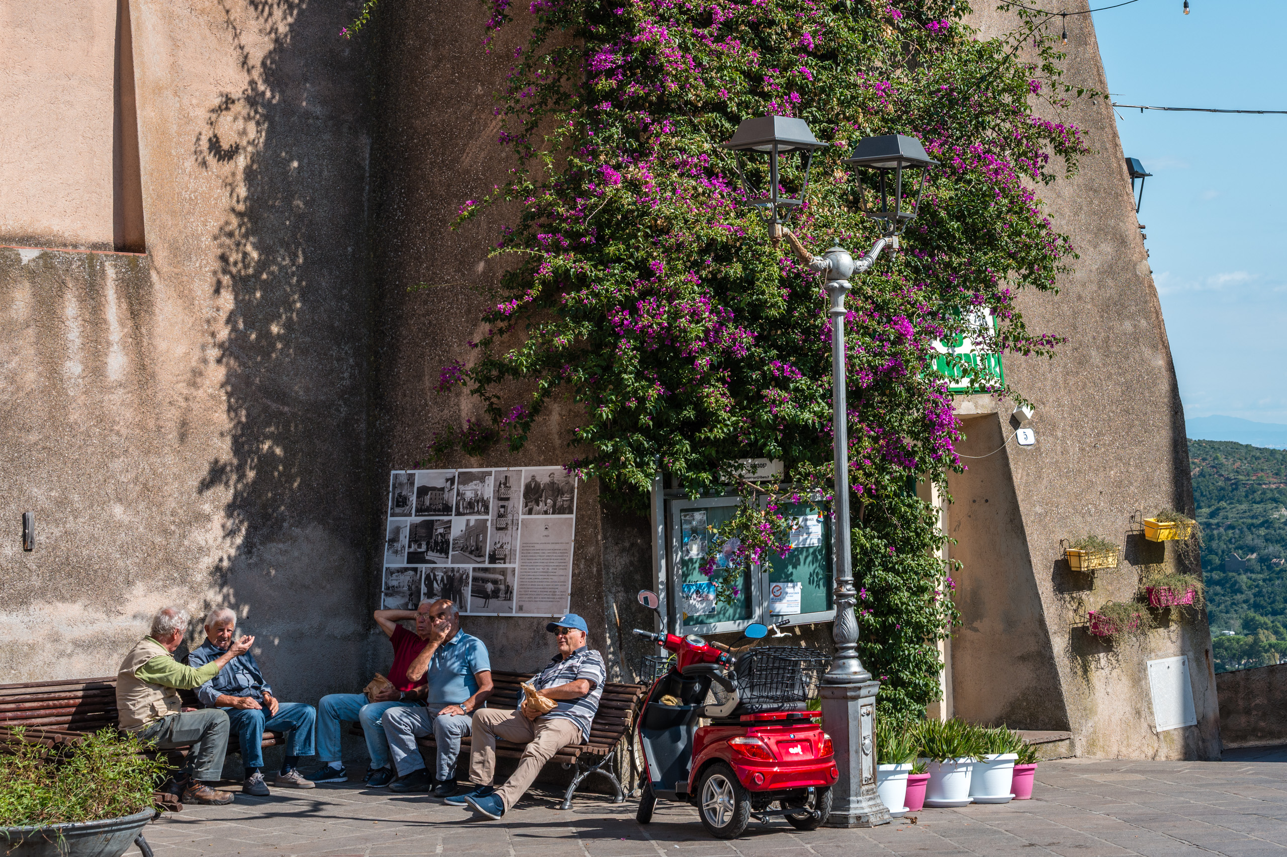 In Rio schnappten wir uns den Roller und flüchteten, nahmen einen Mittagssnack beim „Ristoro rurale Orti di Mare“ in Lacona und fuhren dann weiter über Sant’Illario in Campo über den Monte Perone-Pass nach Poggio, wo wieder Kaffeezeit war.