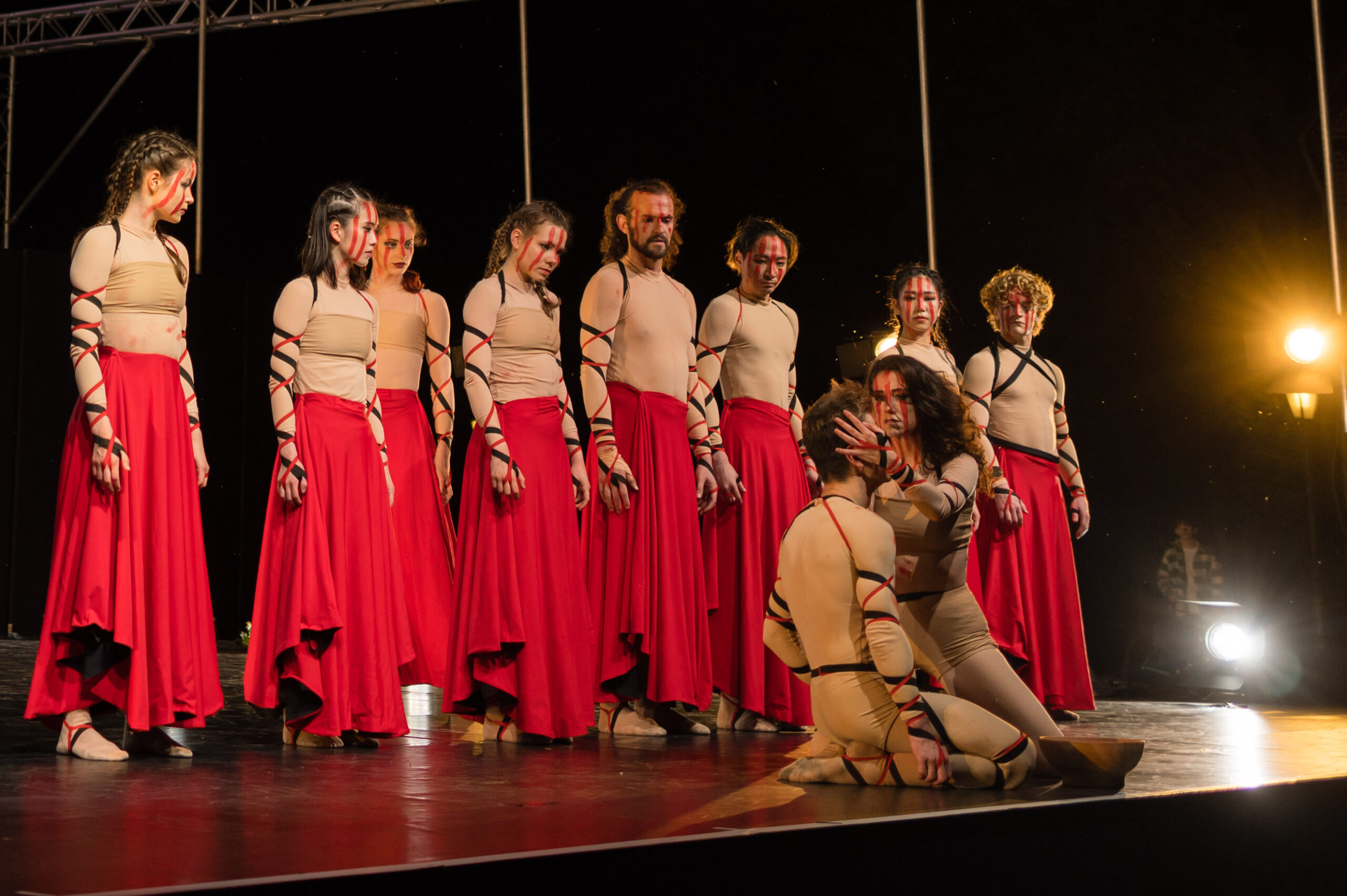 Was die Tänzer boten, war großartig. Das Licht wechselte ständig, und das war die erwünschte Herausforderung. Ich musste wiederholt eine Belichtungskorrektur nach unten (und zurück) machen, vor allem, als die Bühne ganz dunkel wurden und die Tänzer Licht in der Hand hielten. Da war -3 EV angesagt. Ich hätte natürlich auch die ISO in dem Moment fest einstellen können, aber dies erschien mir einfacher.