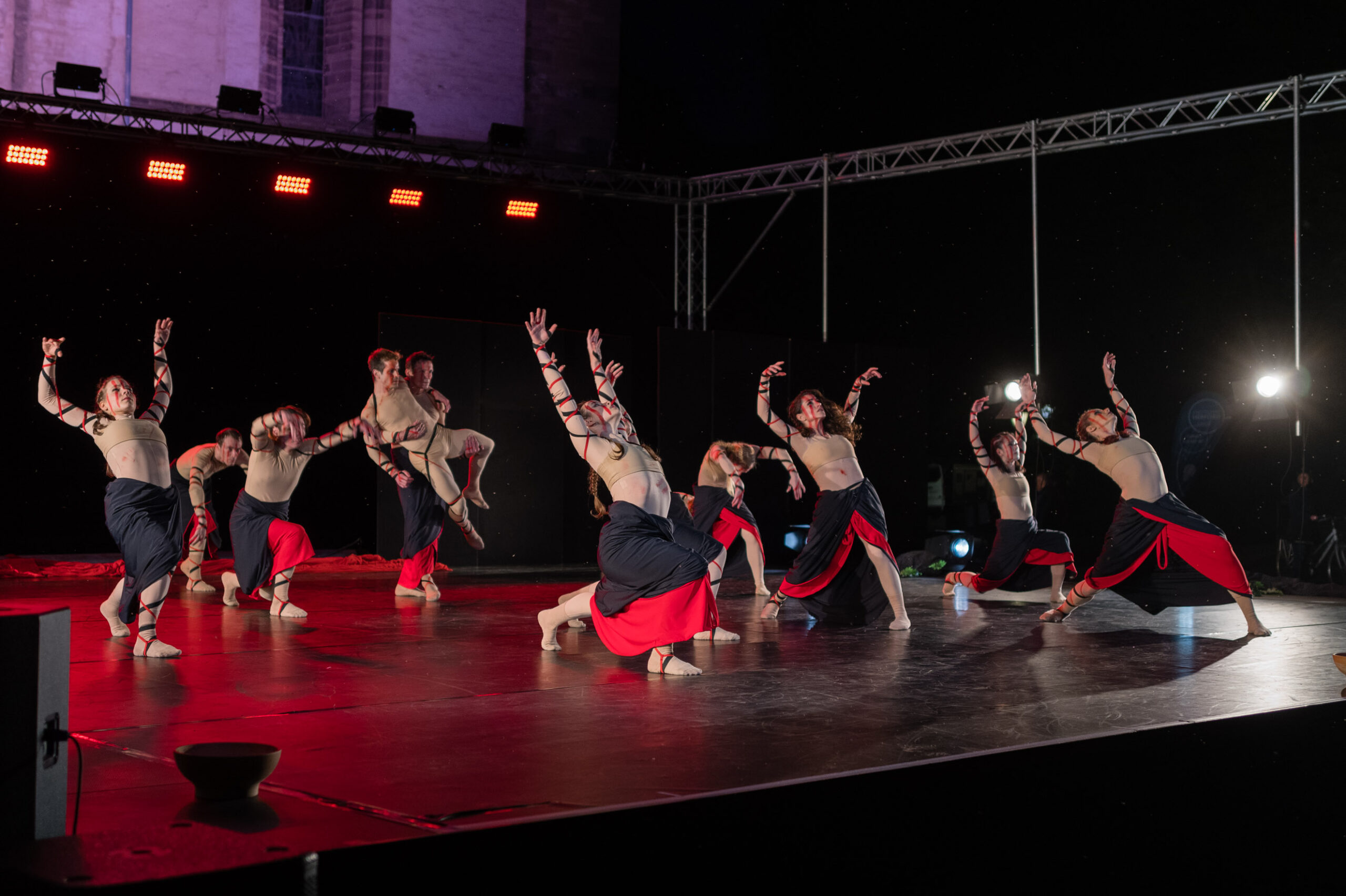 Ich fotografiere gewohnheitsmässig immer im „A“-Modus (also „Aperture“-, Blenden-Priorität, wie bei der M11). Jetzt aber nicht. Ich stellte auf Blende f/1.7 und wegen der Spots auf der Bühne die Belichtungskorrektur auf -1EV. Ich ging dann am Zeitenrad auf 1/125s, war also jetzt voll Manuell unterwegs, im „M“-Modus. Eigentlich gemogelt, denn eine Sache blieb auf „Auto“: Nämlich ISO. Erstens wollte ich die Lichtstärke der Linse ausnutzen und auch eine gewisse Freistellung der anvisierten Motive, zweitens wollte ich 1/125s nicht unterschreiten. Diese Zeit deshalb, weil sie kurz genug ist, um die Tänzer „einzufangen“, aber doch so lang, dass hier und da eine erwünschte Bewegungsunschärfe resultiert, die mehr Dynamik (im motorischen Sinn) in die Fotos bringt.