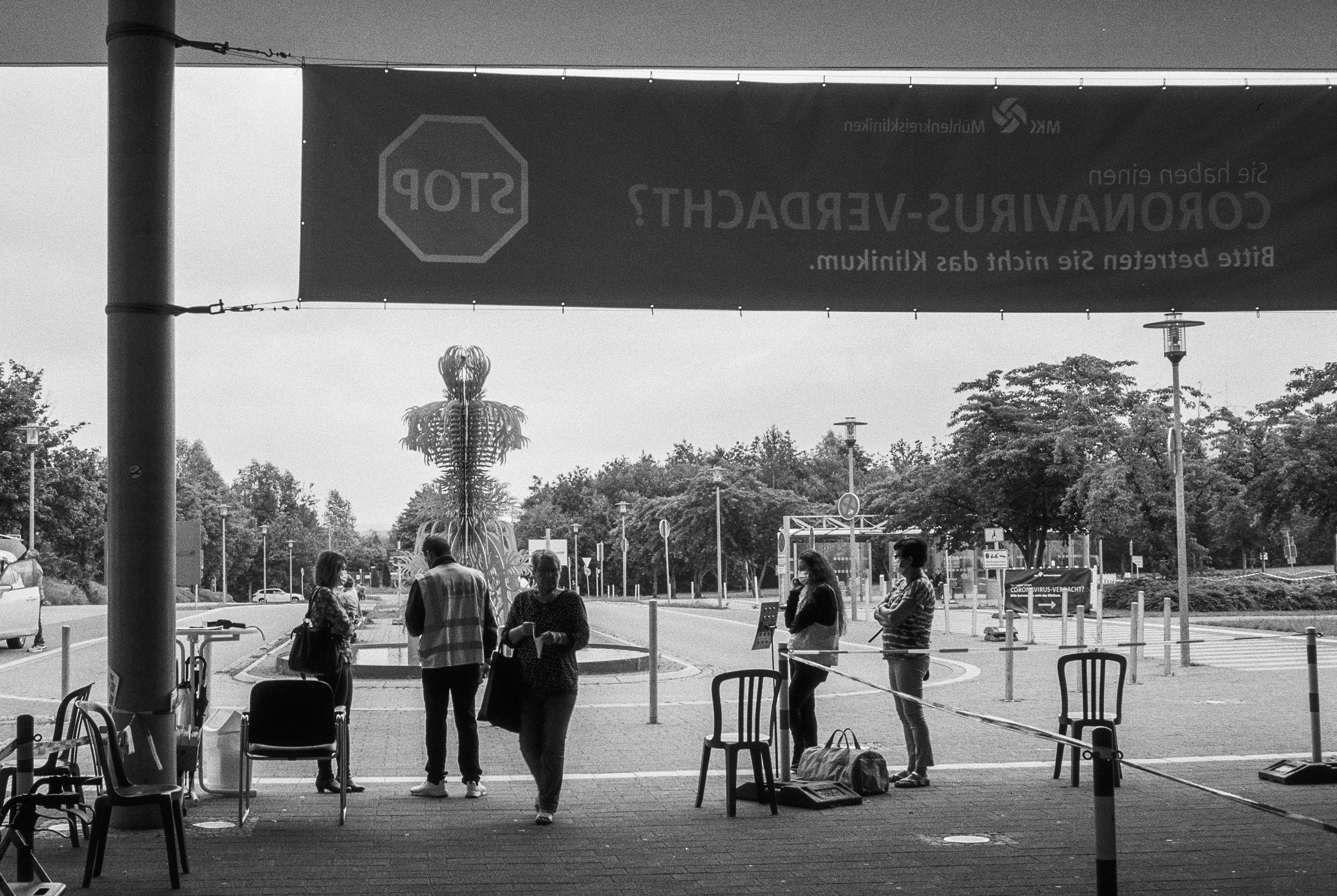 Einige Bilder aus Bielefeld, nachdem die Maskenpflicht eingeführt war (alle mit Plaubel Makina 67 und Ilford HP5):