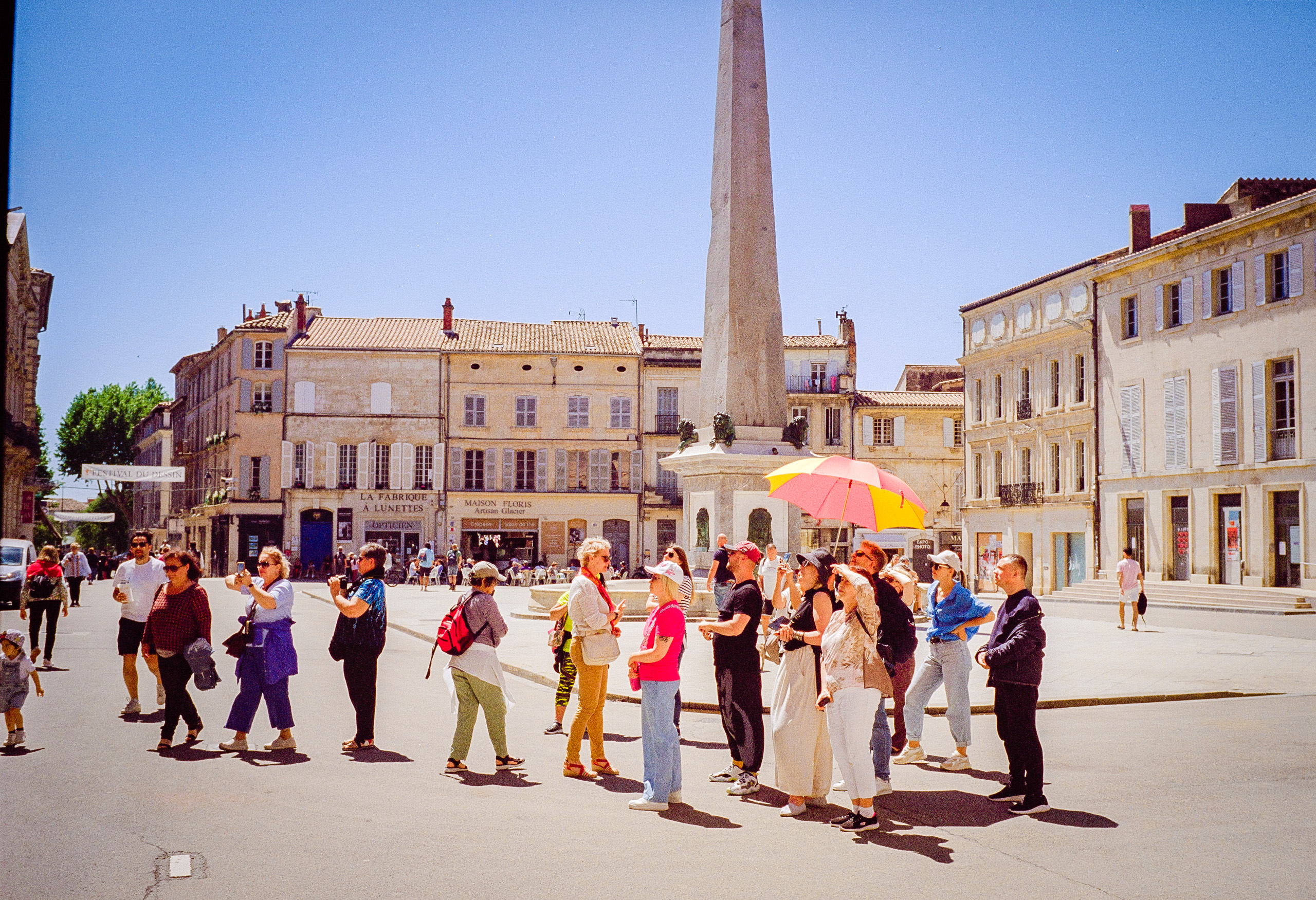 Bei der Durchsicht älterer Silbersalz-Scans für diesen Beitrag stiess ich auf die Fotos, die ich letztes Jahr im Mai in den Alpilles gemacht hatte. Sie waren nicht mal bearbeitet, ich hatte sie schlicht vergessen. Das sind Scans aus dem Apollon-Scanner und sie sind aus den Flat-Scans entwickelt. Hier eine Auswahl zur Demo, wie gut man daraus brauchbare Bilder machen konnte. Ach, und ein paar Fotos sind aus den Carrières des Lumières sind auch dabei, denn da ist mir was passiert, was man nur bei Leica schaffen kann: Ich hatte statt der M11-P die Leica M6 gegriffen und merkte das erst, als ich da war. Obendrein hatte ich in Erwartung von viel Licht einen Silbersalz 50D eingelegt. So hatte ich für Low-Light Fotos ganze 25 ASA zur Verfügung und kein Stativ, herzlichen Glückwunsch. Ich legte die Kamera auf, stellte den Belichtungsmesser der M6 auf 200 ASA, rechnete die Belichtungszeiten zwei Blenden zurück (meist zwischen 1 und 3 Sekunden) und belichtete mit einer Sekunde oder „B“ nach Gefühl. Hat irgendwie immer geklappt. Nur die Leute sind natürlich durchs Foto gelaufen…